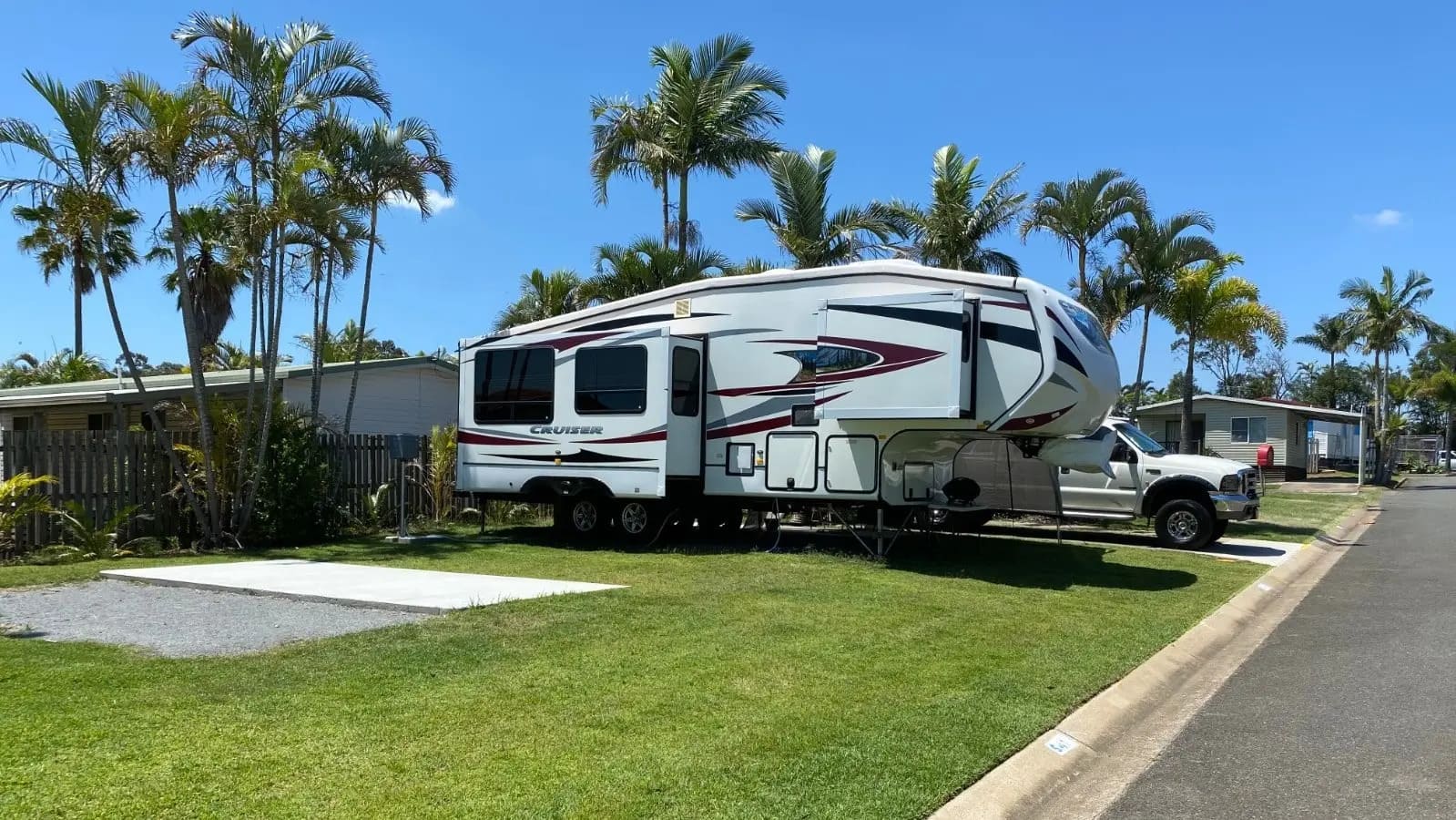 The resort offers spacious, powered camping sites for caravans, fifth wheelers and most types of recreational vehicles such as motorhomes, campervans, rooftop tents and camping trailers. Expect great sites, located close to all amenities with wide roads for easy site access. The sites are spacious, set amongst natural lawns and landscaping, well-drained and central to everything. All sites have concrete annexe pads, access to free wi-fi coverage, twin 15amp electricity outlets, drinking water, waste-water drainage and sewer dump points are available. Amenities include toilets and showers, guest laundry, disability bathroom, kitchen with outdoor sheltered picnic seating and bbq areas.